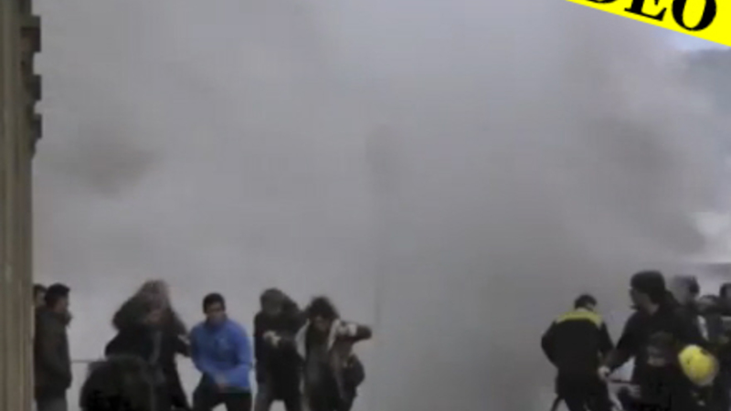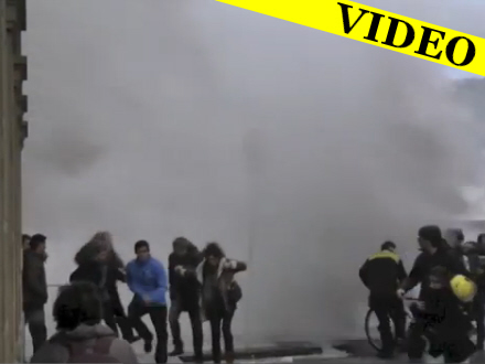 Journalister og fotografer blev smadret op mod en bygning af en kæmpe bølge, da de ville rapportere nyheder om det vilde vejr. Selv om der i d...