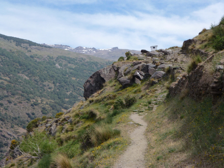 Vores sti krydser floden og går tilbage mod Capileira på vestsiden af kløften, men hvis du vil videre op mod Mulhacens imponerende bjergtop, går der en smuk sti langs med Naute-flodens bred. Stien fører op til refugiet Poqueira, som ligger i 2.500 meters højde, hvorfra man kan foretage adskillige vandreture på Spaniens høje tinder.