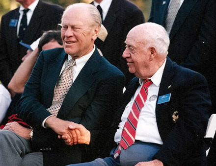 Golfbanearkitekten Robert Trent Jones (th) skabte mesterskabsbanen – her i selskab med Gerald Ford