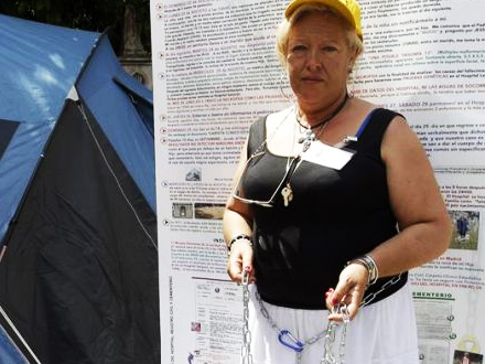 For en uge siden lænkede hun sig til den regionale regeringsbygning i Valencia – og hun har ingen planer om at flytte sig, før ”hendes” døde baby bliver gravet op, og der bliver lavet en DNA-test for at tjekke, om det virkelig er hendes kød og blod.
