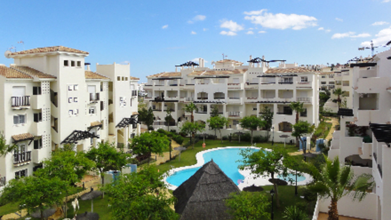 Bebyggelsen består af i alt 288 boliger, der er opført i fire kvadrater omkring hver sit haveanlæg og swimming-pool. For en måned siden var der 140 af de lejligheder tilbage, som banken havde måtte overtage fra det nødlidende byggeselskab. Under mit besøg var tallet nede på 70, og i går var det på 62!