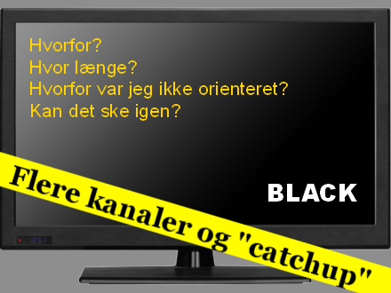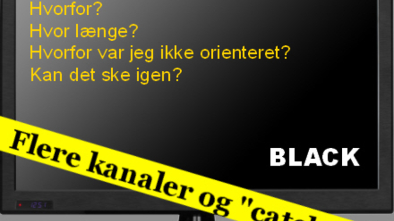 For ikke at tale om, at man snildt kunne have orienteret om det ved rulletekster på abonnenternes tv-skærme i dagene op til vedligeholdelsesarbejdet. Det har man ellers godt finde ud af, når der er blevet blokeret for sportsudsendelser som fodbold- eller OL-udsendelser.