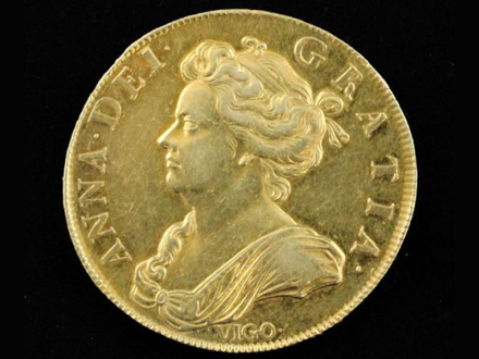 Den sjældne fem-guinea-mønt, som kvinden fandt i sin afdøde mands tøj, blev fremstillet i 1702 af guld, som var blevet stjålet fra et spansk fartøj, skriver The Olive Press.