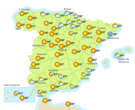 Det har regnet mere end normalt i Baskerlandet, Navarra, La Rioja, Aragón og Catalonien, og det har regnet mindre end normalt i Andalusien, i de østlige egne og på den østlige del af De Kanariske Øer.
