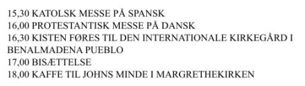 Bisættelsen finder sted søndag den 27. februar 2011 i Margrethekirken med følgende program: