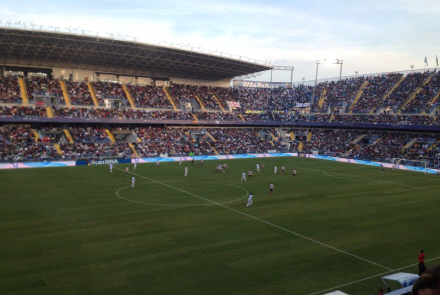 Da jeg tråde ind på stadion, blev jeg ganske imponeret over rammen. Publikum er tæt på banen, og så er stadion lukket hele vejen rundt, så akustikken er helt i top. Det var ikke svært at høre Málags mest hårdkogte fans synge "Viva Espana" op til de medrejsende fans fra Bilbao.