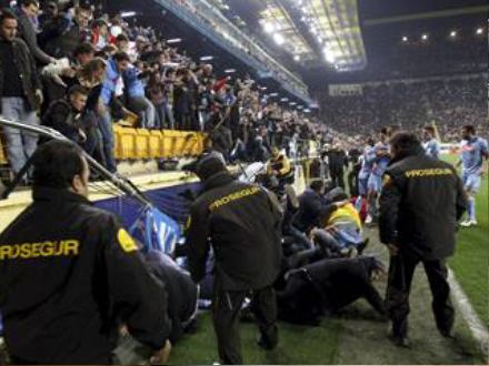 Tilskuere væltede ned fra tribunerne