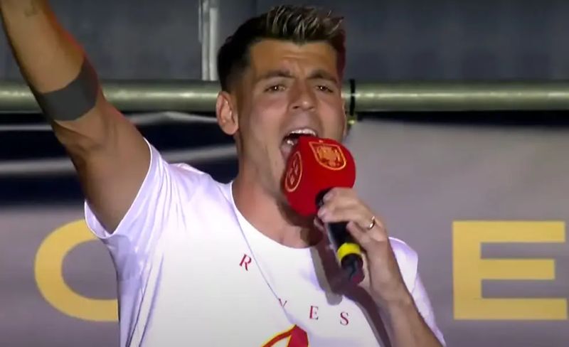 Han startede med at holde en kort tale, hvor han forsikrede, at han altid har givet sit liv til landsholdet, selvom jeg nogle gange scorer mål, andre gange ikke gør det. Morata fik publikum eufori med en patriotisk tale og takkede dem for deres tilstedeværelse: