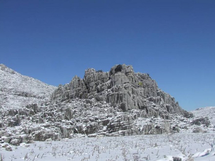 Mandag faldt den første sne i El Torcal, hvor bjergformationerne blev dækket af et fint lag is og sne.