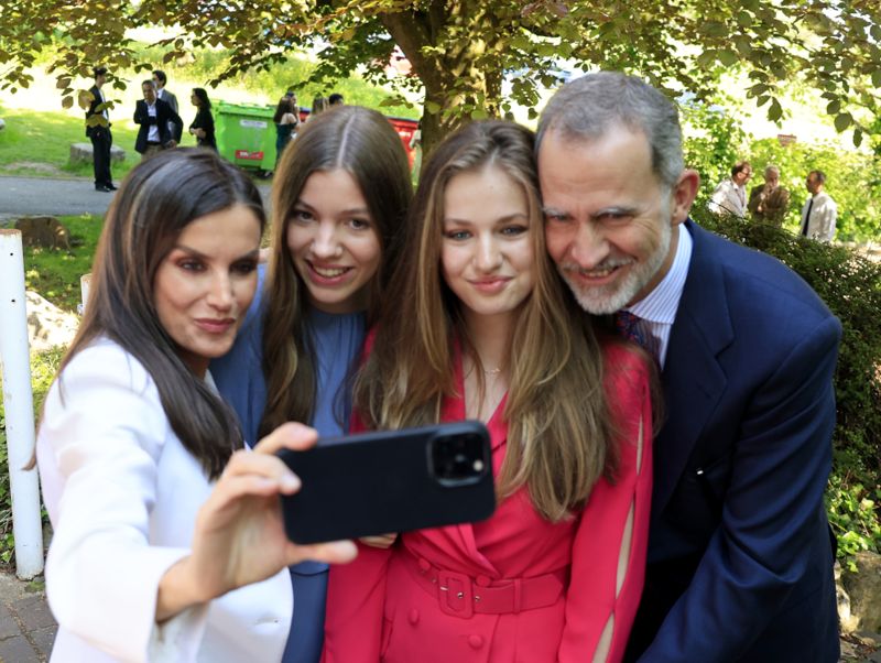 Familiehygge ved kronprinsesse Leonors internationale studentereksamen
