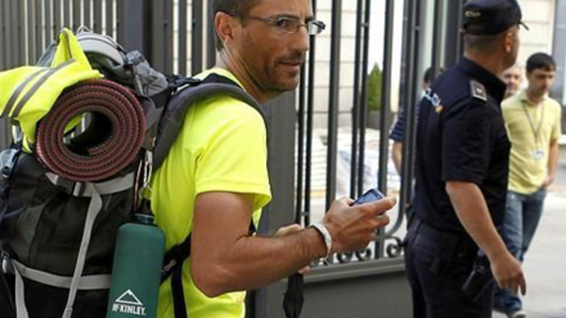 De 600 km blev fordelt over 20 etaper på 30 km om dagen, og det eneste han havde med, var det, der kunne være i rygsækken. Næsten tre uger senere nåede han så Madrid, hvor han blev modtaget af kongresmedlemmer fra venstrefløjspartierne PSOE og IU, som forsikrede, at ”de ville se nærmere på hans jobansøgning”.