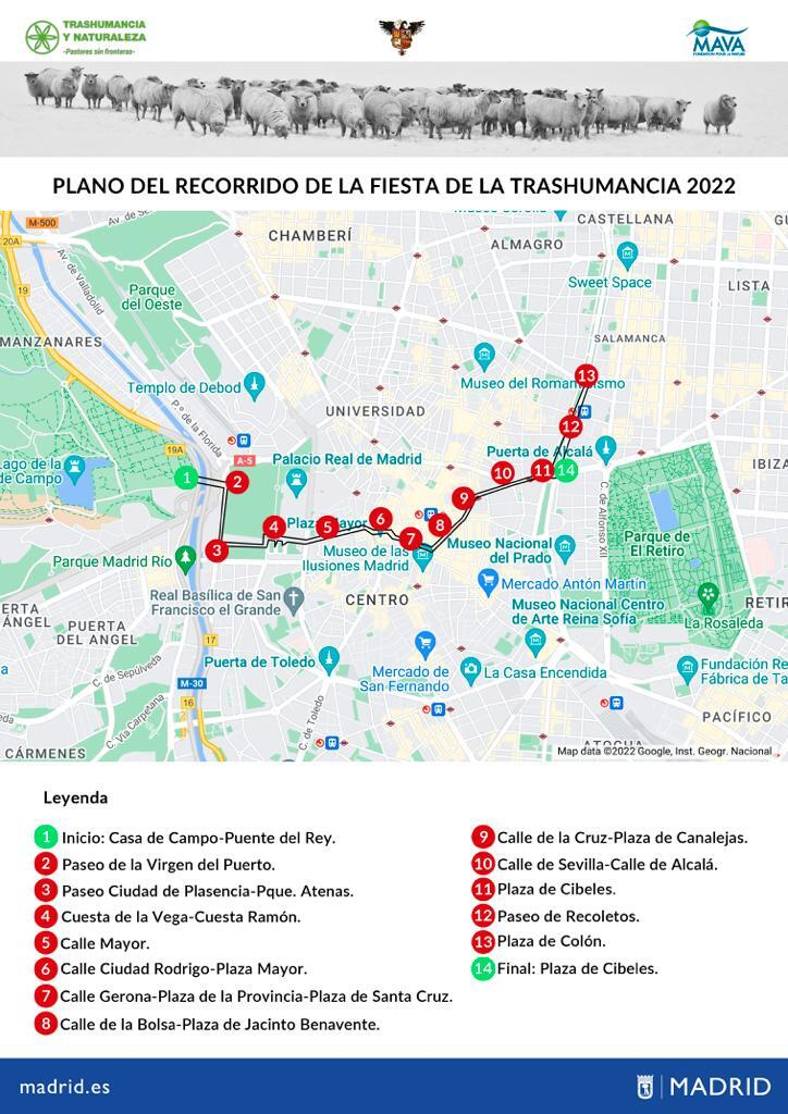 'La Fiesta de la Transhumancia' henviser til en gammel lov om græsnings-skifte fra 1418, hvor hyrderne fik evig ret til at traske gennem Madrid med deres kvæg for at komme til græsning andre steder i landet.