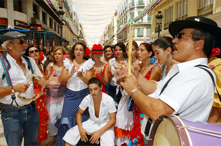 Málagas byfest er en af de største i Andalusien. En non-stop gadefest gennem ni dage for børn og voksne med levende musik, folkedans, tyre, hest...