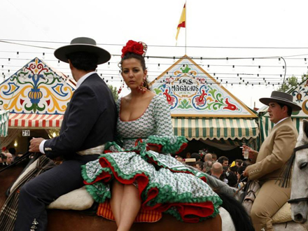 Den traditionelle ”bagsædepassager” klædt sevillanas-kjole