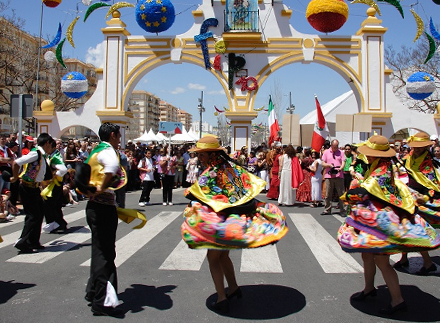 21 stande – smagsprøver på gastronomi og drikkevarer fra deltagerlandene – gigant-barbecue – salg af kunsthåndværk – værksteder – gadeoptog (lørdag kl. 12:00) - flamenco-show og meget mere.