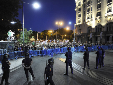 Den hårdere kurs overfor repræsentanter af M15 bevægelsen i Madrid skyldes det forestående katolske ungdomsstævne fra den 11. til 21. august med officielt besøg af Pave Benedicto XVI.