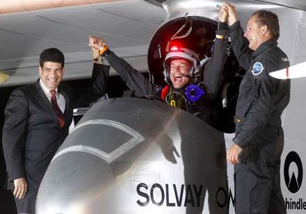 Små 19 timer tog det Bertrand Piccard at blive den første i historien til at gennemføre en interkontinental flyvning i et soldrevet fly.