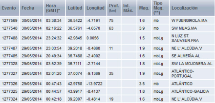 Det seneste døgnstid har der generelt været lidt gang i undergrunden. I Almería har der senest været to skælv i går aftes på henholdsvis 1,6 og 1,8.