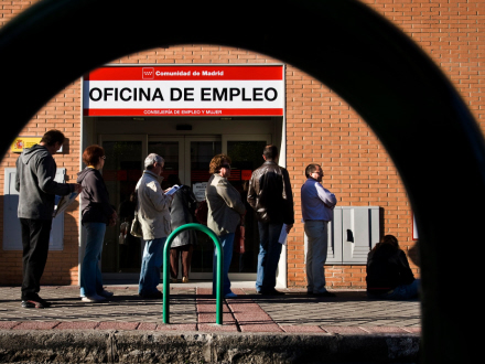 I juni var der 5,5 millioner arbejdsløse i Spanien, hvilket svarer til en arbejdsløshedsprocent på 24,47 procent. Det var lavere end det foregående kvartal, men stadig kun overgået af Grækenland i eurozonen.
