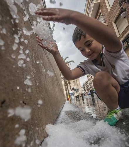 Indbyggerne i den populære turist-kommune Orihuela på den spanske østkyst blev i går overrasket af et udsædvanligt voldsomt haglvejr. Uvejret startede klokken 17.30 og betød, at folk hurtigt måtte flygte i læ for ikke at blive ramt af kæmpe-hagl, der væltede ned fra himlen.