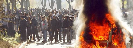 Også de unge er på barrikaderne. Her en situation fra Nanterre, hvor 200 unge demonstrerede.