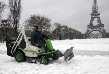 30 procent af alle forbindelser til Charles de Gaulle Lufthavnen i Paris måtte i går indstilles på grund af det hårde vintervejr.