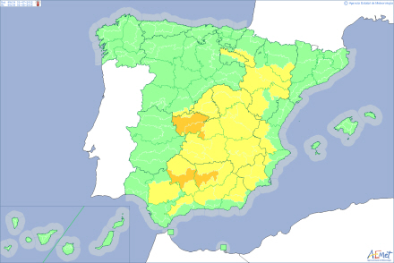 Men også langs Middelhavskysterne bliver det varmt. Murcia får op til 38 grader og Málaga 39. Der er desuden udsendt ”gult varsel” i Aragón, Madrid, La Rioja, Almería, Granada, Málaga, Sevilla, Valencia, Alicante, Ávila, Guadalajara, Cuenca, Ciudad Real og Albacete, hvor man bør holde sig inde eller som minimum blive i skyggen i de varme eftermiddagstimer mellem kl. 13 og 19.