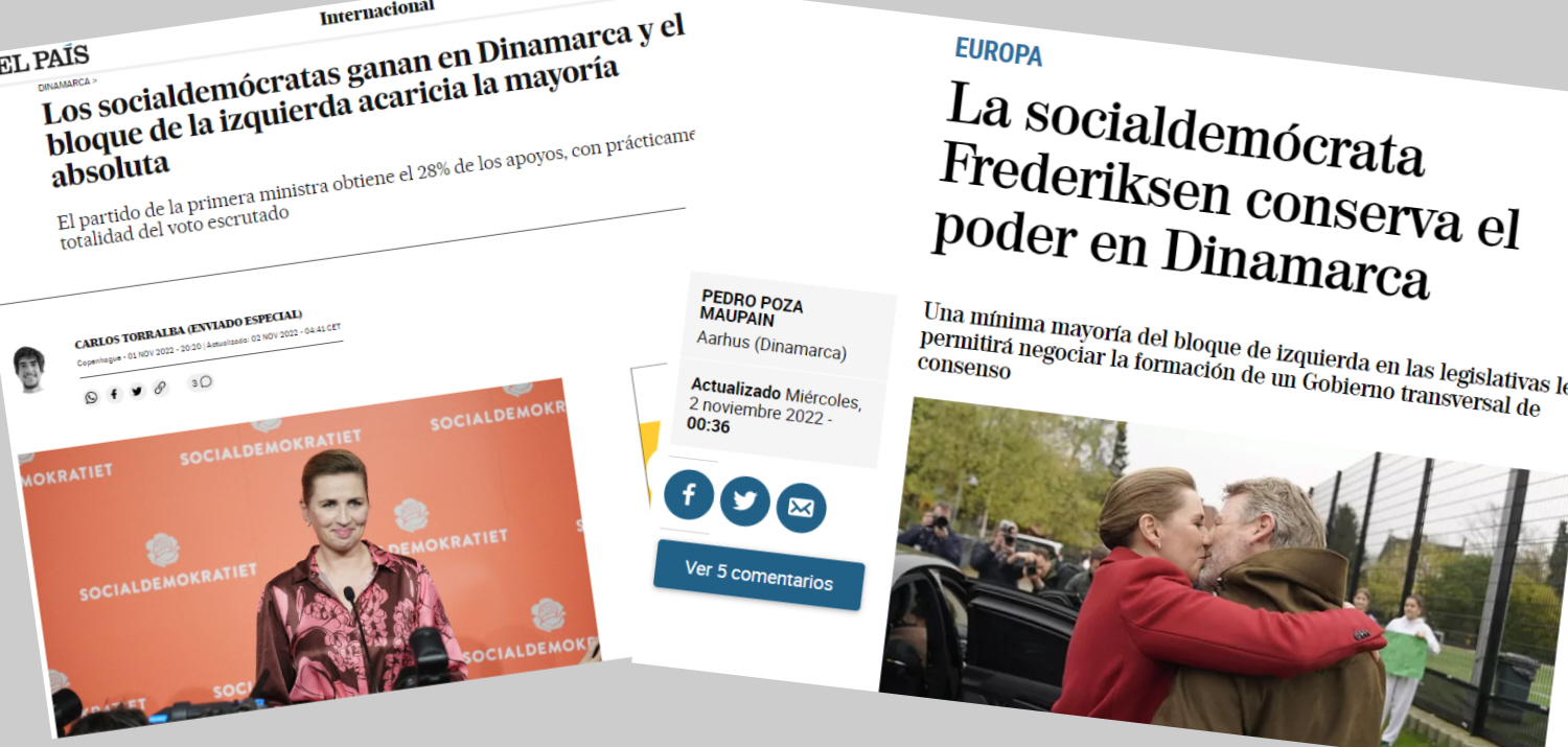 “La socialdemócrata Frederiksen conserva el poder en Dinamarca”, skriver El Mundo i dag.