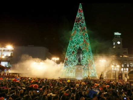 Efter nattens festligheder fjernede hovedstadens rengøringsselskab ikke mindre end 22,6 ton affald fra pladsen Puerta del Sol.