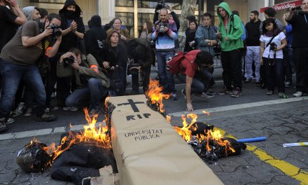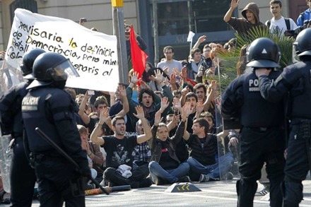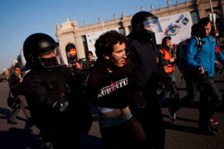 I Madrid og Barcelona besatte en gruppe unge universitetet i protest mod nedskæringer inden for undervisningssektoren. 22-årige Pau Bronsoms, der studerer ved universitetet i Barcelona, hævder, at politiet brugte knipler og affyrede gummikugler.