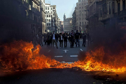 Igen i går var der omfattende demonstrationer i adskillige byer i hele landet. I Barcelona bruste frustrationerne over, og det kom til voldelige sammenstød mellem kampklædte betjente og demonstranter. Her blev der sat ild til affaldscontainere og kastet med sten og andre genstande mod betjente, butiksruder og, hvad der ellers stod ”i vejen”.