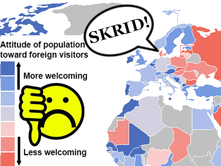 De tre lande, der er mest lukkede over for turister er Bolivia, Venezuela og Rusland, men også lille Danmark kommer desværre med her. Forskerne bag rapporten konkluderer, at der ikke er nogen klar årsag til, hvorvidt et lands indbyggere er venligt stemt over for besøgende eller ej.