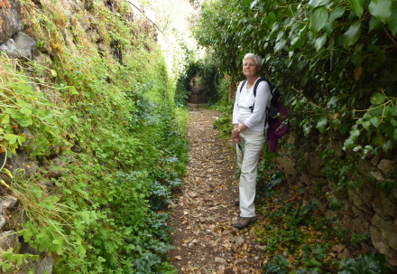 Vejen tilbage mod Alájar går forbi kirkegården og løber et stykke langs et vandløb, indtil den kravler opad cirka 200 højdemeter, til den rammer kørevejen mellem Aracena og Alájar. Herfra går en fin sti lige ned til Alájar.