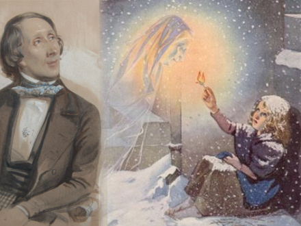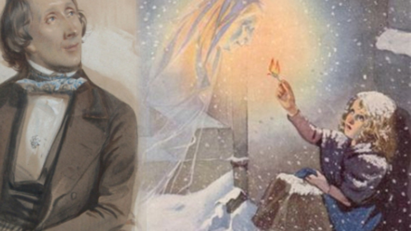 Det var så grueligt koldt; det sneede og det begyndte at blive mørk aften. Det var også den sidste aften i året, nytårsaften. I denne kulde og i dette mørke gik på gaden en lille, fattig pige med bart hoved og nøgne fødder; ja hun havde jo rigtignok haft tøfler på, da hun kom hjemme fra; men hvad kunne det hjælpe! det var meget store tøfler, hendes moder havde sidst brugt dem, så store var de, og dem tabte den lille, da hun skyndte sig over gaden, idet to vogne fór så grueligt stærkt forbi; den ene tøffel var ikke at finde og den anden løb en dreng med; han sagde, at den kunne han bruge til vugge, når han selv fik børn.