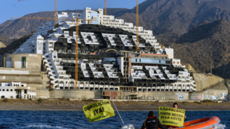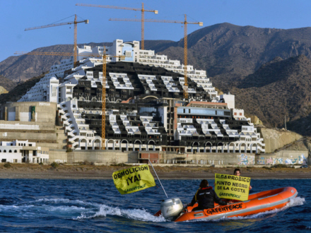 Greenpeace opfordrer Miljøministeriet og den andalusiske regering til at rive bygningen ned og give kysten tilbage til offentligheden.