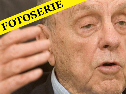 Formanden for PP, Mariano Rajoy, sludrer med Fraga i 2011