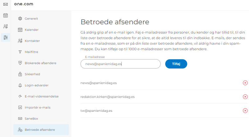 Vejen til at modtage nyhedsbrevene i din normale indbakke, hvis du har din private emailadresse hos one.com