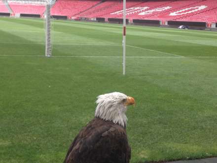 Det er ikke en udstoppet udgave af fuglen; den var skam sprællevende, men den var bundet fast til sin pind. Hun flyver mellem tre og fire omgange rundt over tilskuerne inden hver hjemmekamp, og hun afslutter turen ved at lande i midtercirklen.