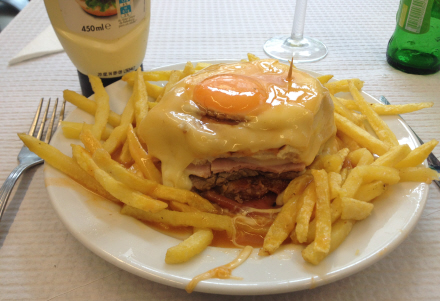 Francesinha er måltidet, du skal holde dig fra, hvis du har et for højt kolesteroltal. Hvis du ikke har det, vil jeg klart anbefale denne lokale specialitet fra Porto. Francesinha består i al sin fedtethed af en slags sandwich med skinke, pølser eller oksekød, alt efter hvilken etage du kigger på.