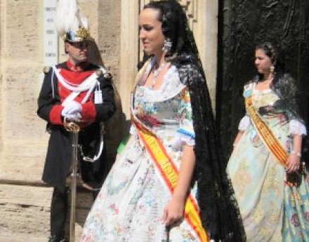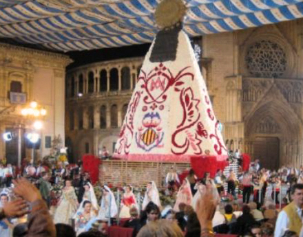 Hver dag er der festfyrværkeri, 'mascletá,' så jorden ryster under en. 100.000 mennesker i pragtfulde kostumer går i processioner med musik fra 300 orkestre og byens skytshelgen 'Den hellige Jomfru for de Værgeløse' - 'Los Desamparados' – modtager 50.000 blomsterbuketter.