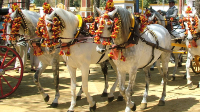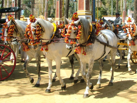 De andalusiske og arabiske fuldblodsheste, der er spændt for vognene, er i sig selv et betagende syn. De prægtige dyr er alle udsmykkede med klokker, bjælder og farvestrålende bånd. Dertil kommer det striglede hår og de skindende manker, der giver reflekser i sollyset.