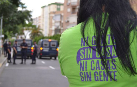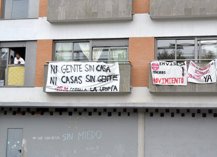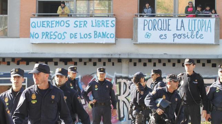 22 hjemløse familier blev søndag smidt ud fra deres improviserede hjem 'Corrala Utopía' i Sevilla, hvor de har boet i to år. De havde besat et ubeboet lejlighedskompleks, ejet af en spansk bank, og lå i forhandlinger med kommunen om brugen af de tomme lejligheder.