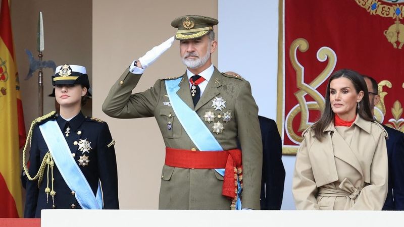 Kong Felipe VI forestod sammen med dronning Letizia og kronprinsesse Leonor den højtidelige hyldest til nationalflaget og militærparaden på Plaza de Neptuno. Efter ceremonien, der var præget af regnvejret, gav kongeparret sammen med Leonor den traditionelle reception på det kongelige palads i Madrid for at fejre nationaldagen.