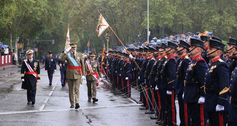 Efter hyldesten til dem, der gav deres liv for Spanien, overværede kongen, dronningen og kronprinsessen paraden af hæren, flåden, civilgarden, den militære beredskabsenhed, den kongelige garde, statens sikkerhedsstyrker og -korps og forskellige sikkerheds-, civilforsvars- og beredskabsorganer.