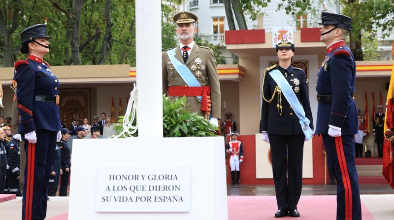 Derefter modtog kongeparret og kronprinsessen æresbevisninger for god adfærd fra en bataljon i Den Kongelige Livgarde, og Kong Felipe inspicerede formationen sammen med chefen for forsvarsstaben.