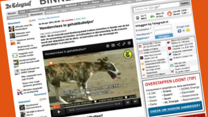 Ifølge den hollandske avis De Telegraaf har spansk politi fået besked på at undersøge forlydender om, at der skulle være fundet hundekød i frikadeller og dyrefoder, fremstillet i Holland. Avisen hævder, at kødet skulle stamme fra hunde fra et dyreinternat i Pontevedra i Galicien i det nordvestlige Spanien.
