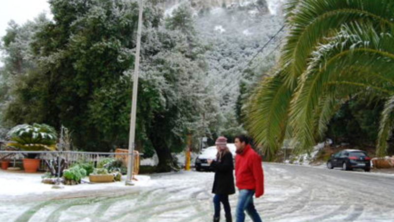 Snegrænsen er faldet til 600 meter i Pyrenærerne og 900 meter i Cantabrien. I den nordøstlige del af landet bliver det bidende koldt, og på Balearerne er der varsel om hård frost og is-glatte veje. Her nærmer snegrænsen sig kysterne.
