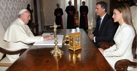 Don Felipe y Doña Letizias første officielle rejse gik til Vatikanet den 30. juni 2014, hvor de blev ledsaget af Spaniens udenrigsminister Jose Manuel Garcia-Margallo og hans stab.