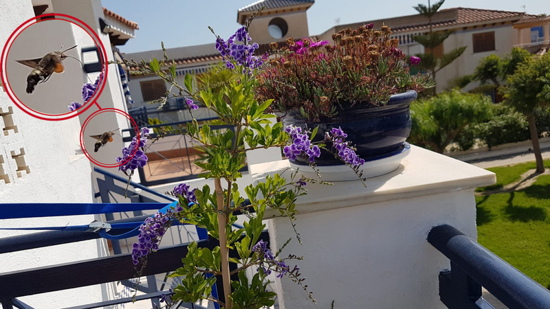 Men der er tale om en Macroglossum stellatarum - eller på dansk: en duehale.
