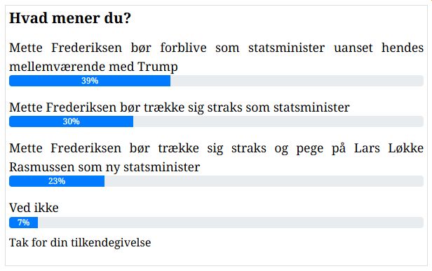 I den anonyme afstemning ønsker ‘det tavse flertal’ sig, at Mette Frederiksen trækker sig. Anderledes så det ud blandt de skriftlige kommentarer.